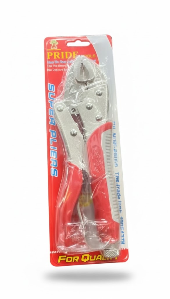 Pride Curved Jaw Plier Grip Plier 10 inch” is a versatile hand tool used for gripping, bending, and turning objects.The curved jaw design provides a secure grip on various materials, making it ideal for tasks like holding pipes, bolts, and nuts. It features a 10-inch size, offering ample leverage for tackling tougher tasks while remaining comfortable to handle. The plier’s grip is designed for ergonomic comfort, reducing hand fatigue during extended use. This tool is commonly used in plumbing, automotive, and general maintenance tasks.