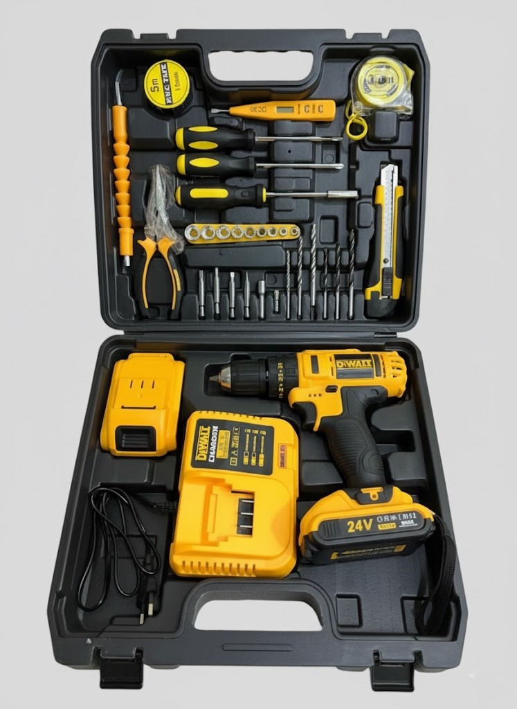 - 24V High-Power Motor: Delivers exceptional drilling and driving performance, even in the toughest materials.