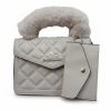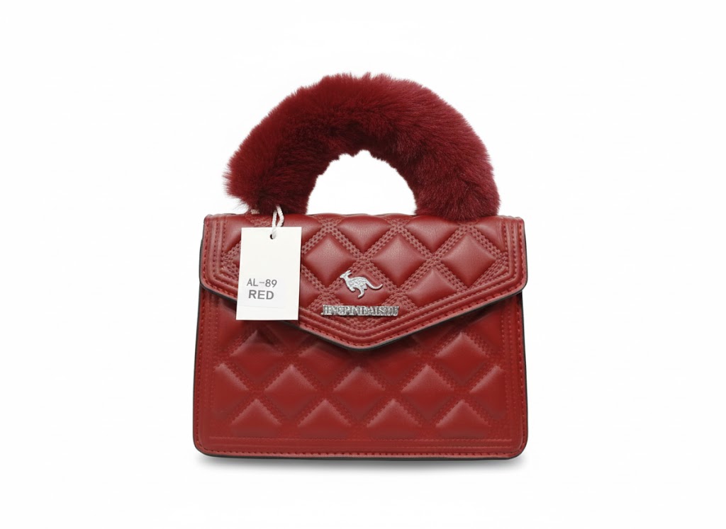 KANGAROO Luxury Mini Fur-Handle Handbag – Deep Red / Maroon.