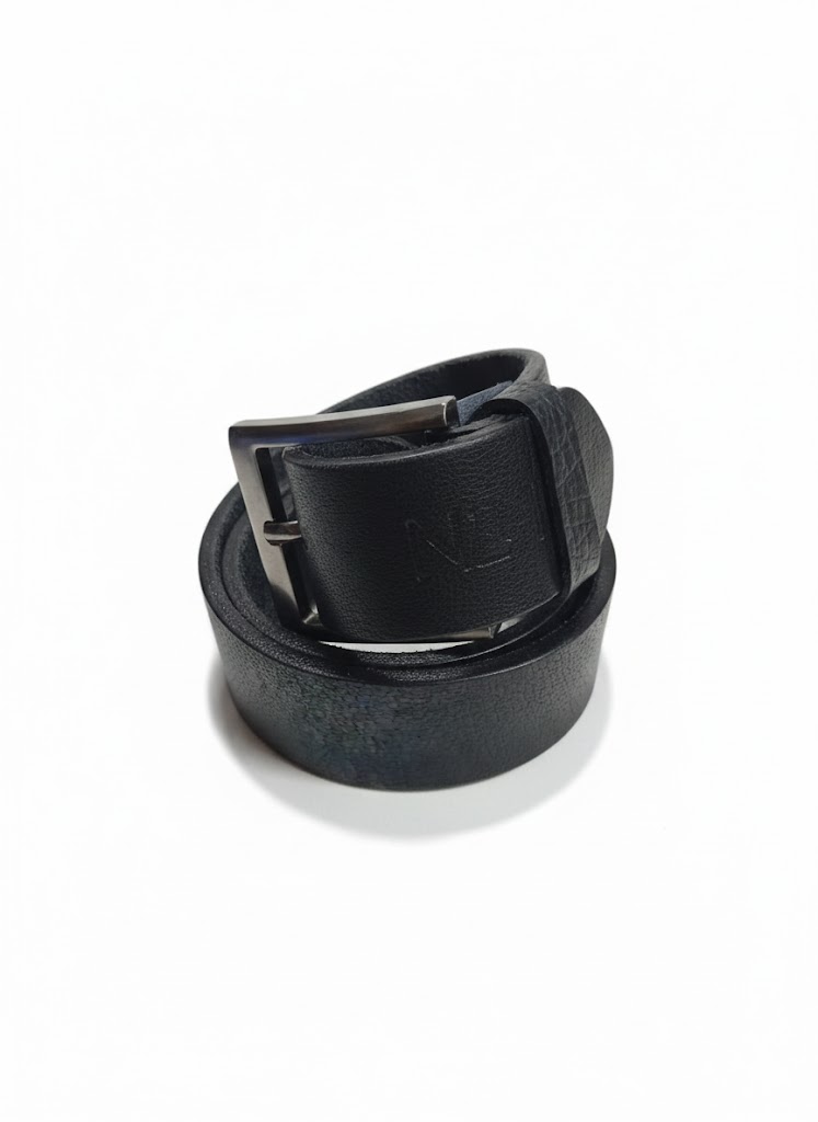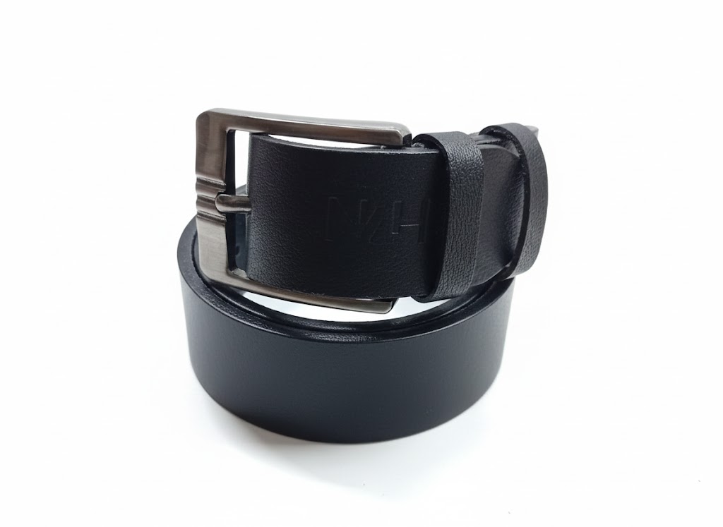 NLH Men’s Premium Genuine Leather Belt with Embossed Logo & Modern Gunmetal Pin Buckle – Classic Black.