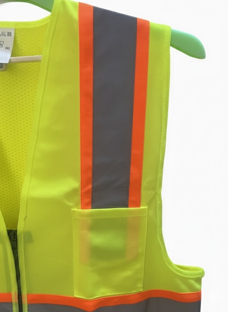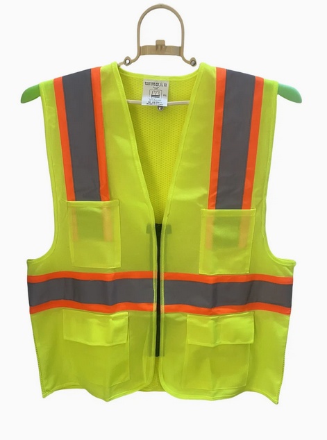 Orange Safety Vest with Grey Reflective Strap 4 Pockets.