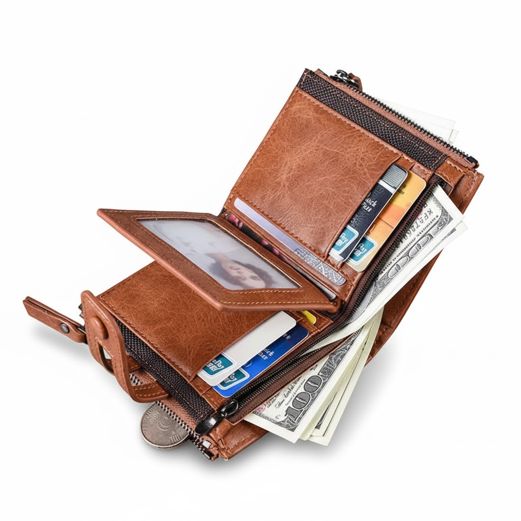 Original Buffalo Leather Trifold Wallet (Premium Crafted) Black.