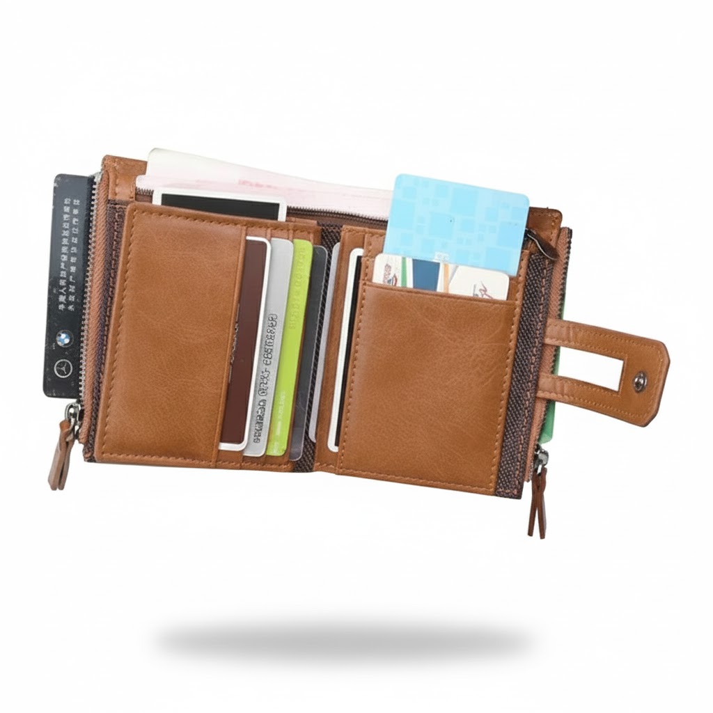 - Stylish snap-button leather strap closure + dual side zippers for extra security and easy access